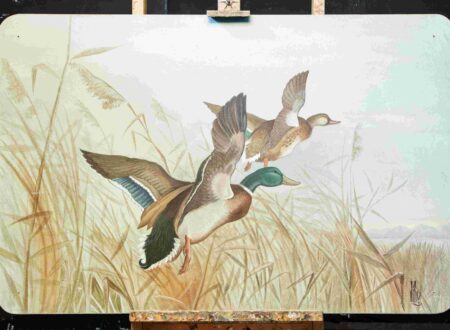 Quadro Anatre di Dino Bezzone (dibez) Anatre, olio su legno anni 50. Era nato a Ceva, Cuneo, nel 1916; diplomato