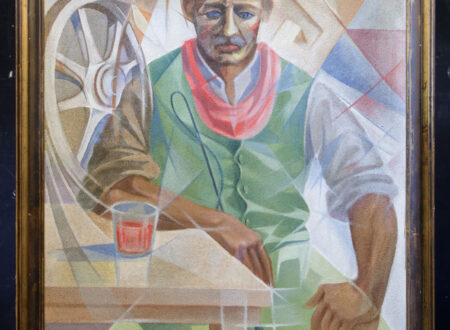 Il Carrettiere, tecnica della sabbiatura prima della stesura del colore, anni 50. Era nato a Ceva, Cuneo, nel 1916; diplomato