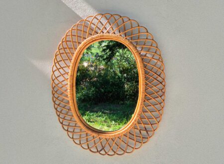 Oval Rattan Mirror, Italy, 1960s Specchio ovale in rattan, Italia, anni ’60 Materials: Rattan, mirrored glass Materiali: Rattan, vetro specchiato
